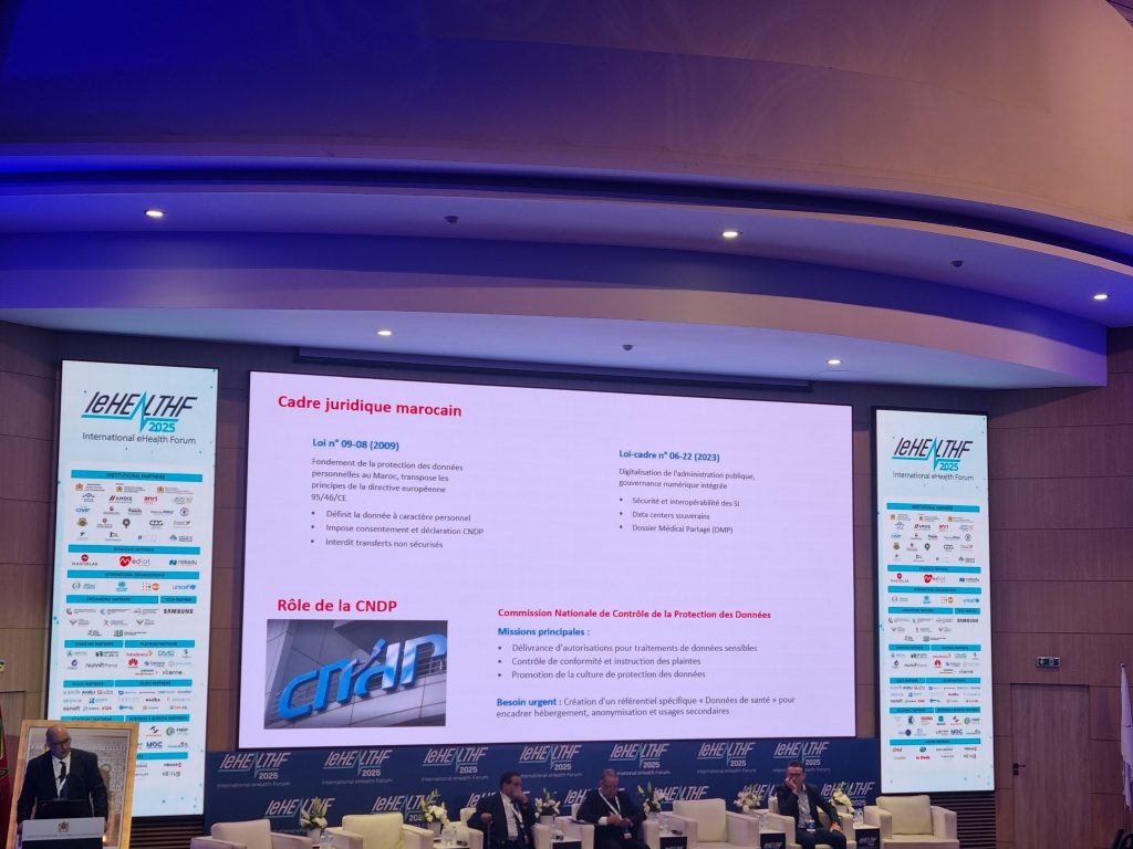 مشددا على ضرورة إخفاء هوية المعنيين بالأمر وتشفير المعطيات الخاصة بهم . ولهذا الغرض، استعرض الإطار القانوني الذي ينظم معالجة هذه المعطيات ، وهو القانون 08-09 المتعلق بحماية الأشخاص الذاتيين تجاه معالجة المعطيات ذات الطابع الشخصي ،والقانون الإطار 06-22 المتعلق بالمنظومة الصحية. ولكن قبل ذلك بكثير، يذكر الأستاذ أن المبدأ العام ينص على أن المعطيات الصحية يجب ألا تكون متاحة للجميع.